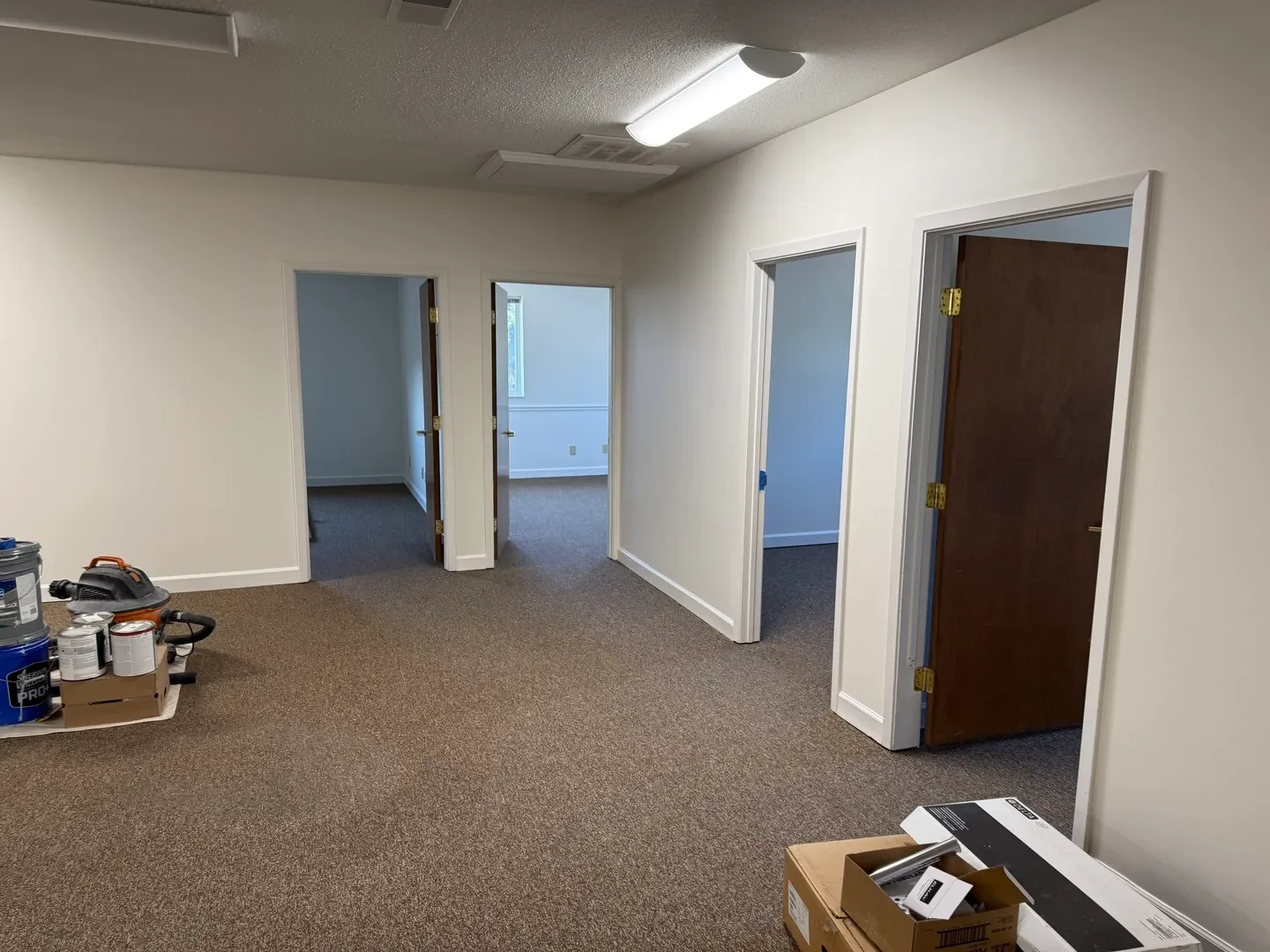 The suite has been freshly painted and carpeted, creating a professional and welcoming environment for your business. Tenants and visitors enjoy access to a shared conference room, additional common restrooms, and elevator service for convenience. Outdoor signage is also available to enhance your visibility.